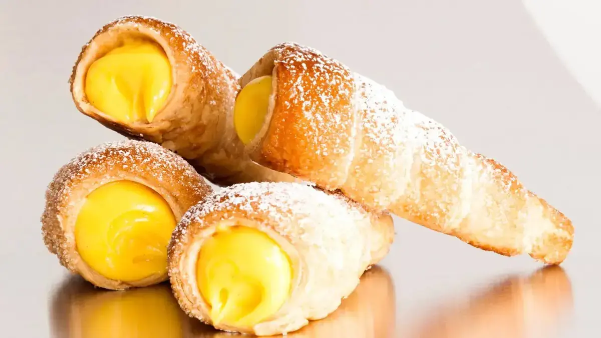 I cornetti bicolore con crema al latte o alla sfoglia al limone offrono varietà e freschezza assoluta. Per i più audaci, il cornetto fritto alla crema è una delizia esplosiva, croccante fuori e morbido dentro.